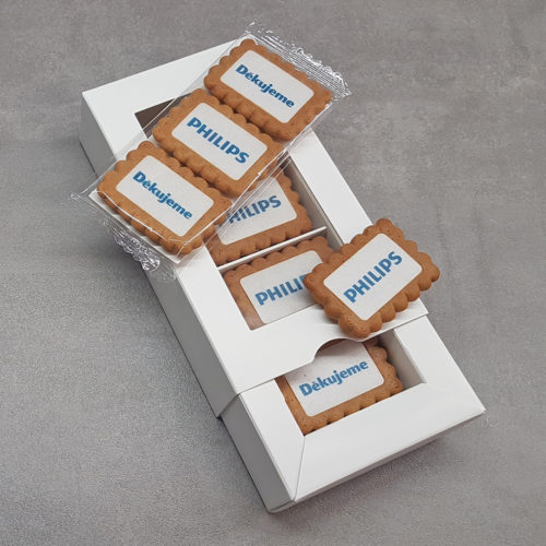 Sušenky můžeme potisknout vaším firemním logem či jinou libovolnou grafikou, čímž se stávají originálními reklamními dárky opravdu pro každého – jsou např. skvělým způsobem, jak vyjádřit poděkování či posílit vztahy.